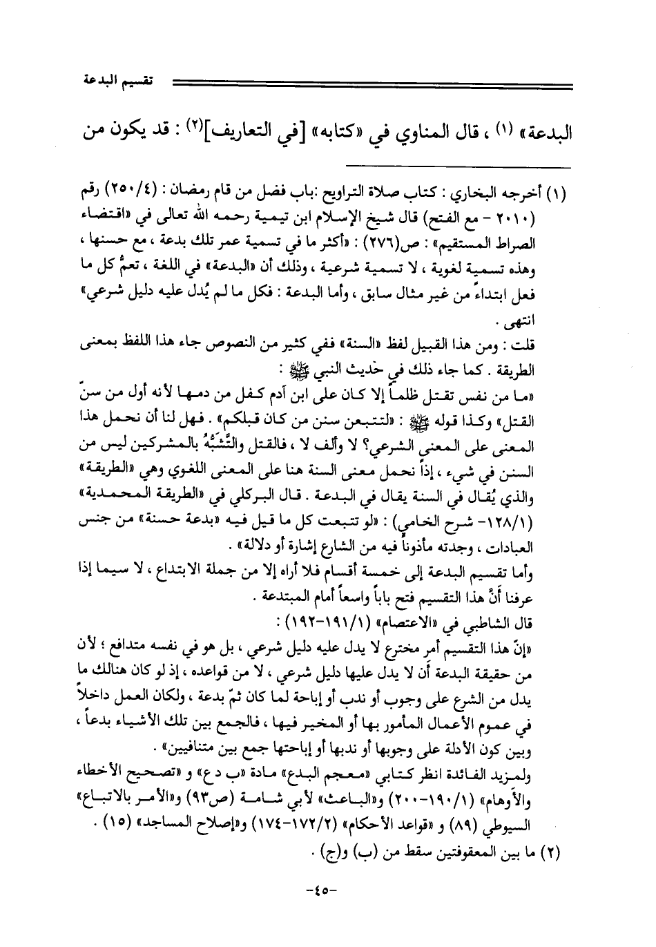 الْبِدْعَة قَالَ الْمَنَاوِيّ فِي كِتَابه فِي التعاريف قد يكون من