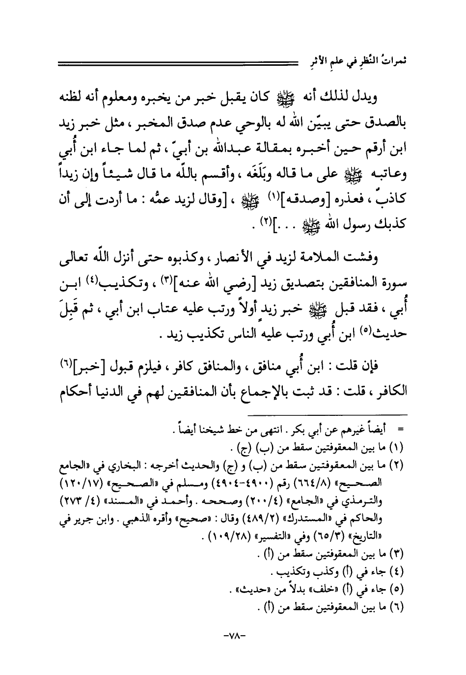 فَإِن قلت ابْن أبي مُنَافِق وَالْمُنَافِق كَافِر فَيلْزم قبُول خبر الْكَافِر قلت قد ثَبت بِالْإِجْمَاع بِأَن الْمُنَافِقين لَهُم فِي الدُّنْيَا أَحْكَام