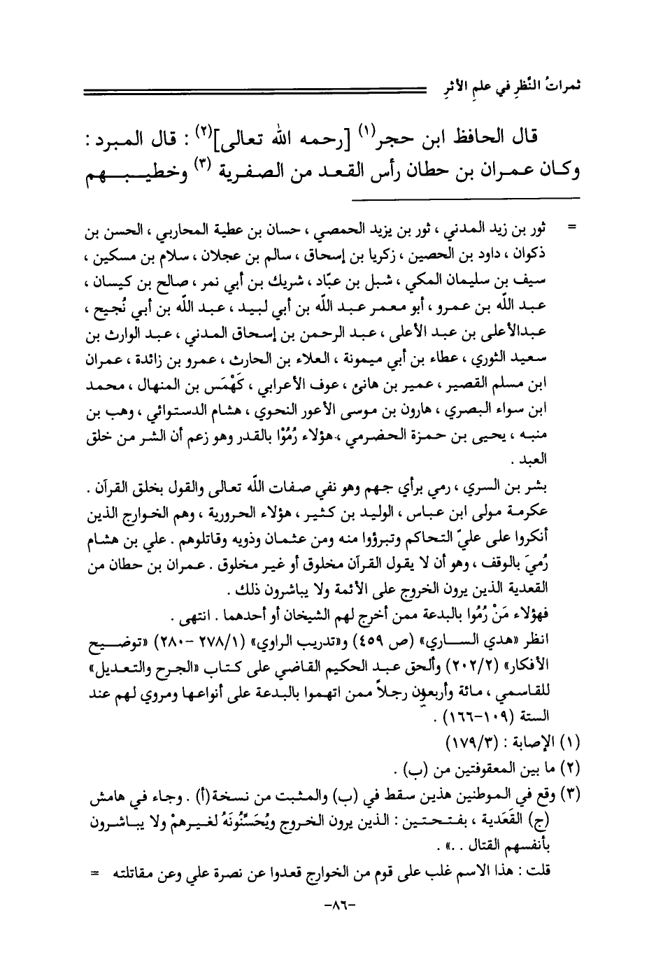 قَالَ الْحَافِظ ابْن حجر رَحمَه الله تَعَالَى قَالَ الْمبرد وَكَانَ عمرَان بن حطَّان رَأس القعد من الصفرية وخطيبهم