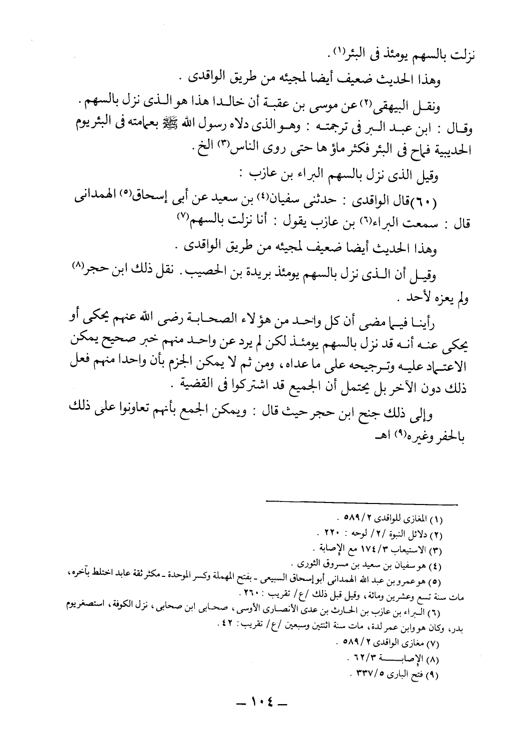 (60) قال الواقدي: حدثني سفيان4 بن سعيد عن أبي إسحاق5 الهمداني قال: سمعت البراء6 بن عازب يقول: أنا نزلت بالسهم7.