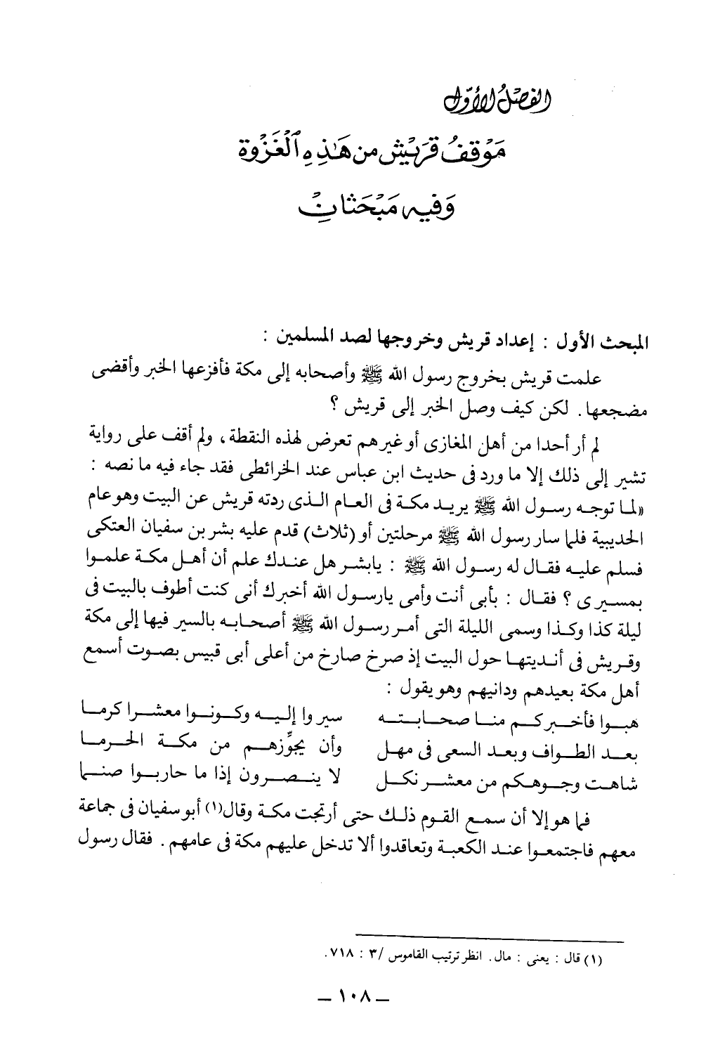 الفصل الأول: موقف قريش من هذه الغزوة