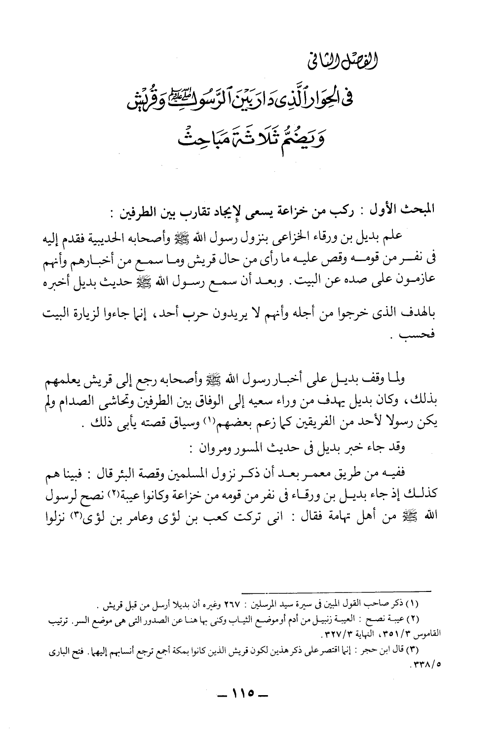 الفصل الثاني: في الحوار الذي دار بين الرسول صلى الله عليه وسلم وقريش