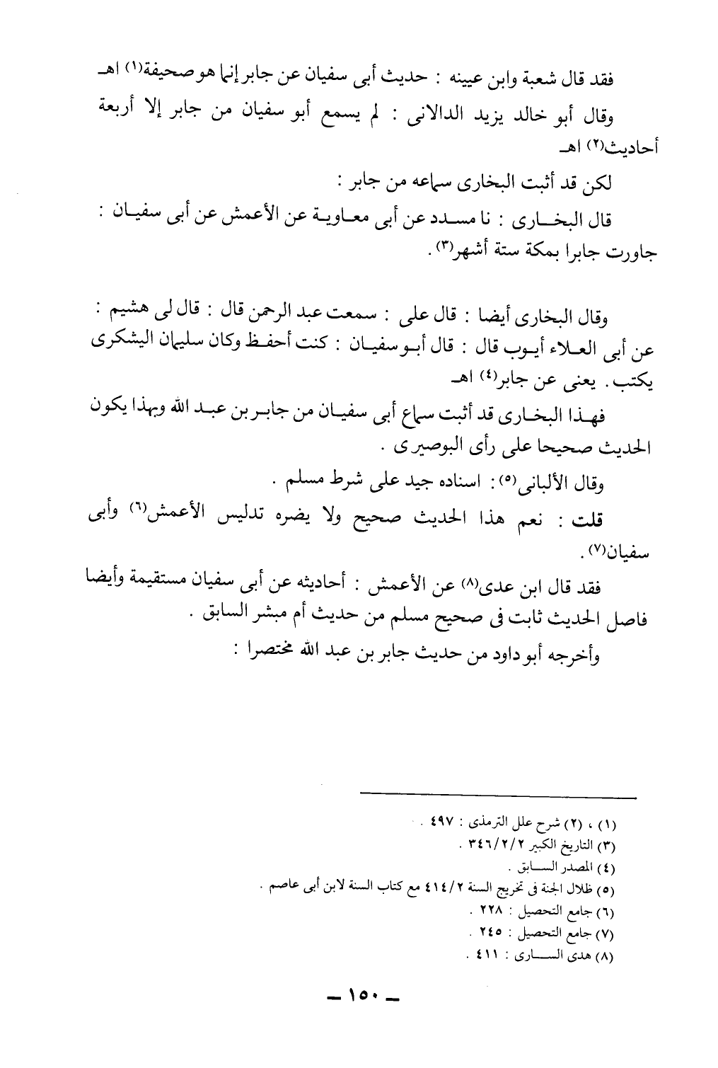 وقال أبو خالد يزيد الدالاني: "لم يسمع أبو سفيان من جابر إلا أربعة أحاديث"2 ا. هـ