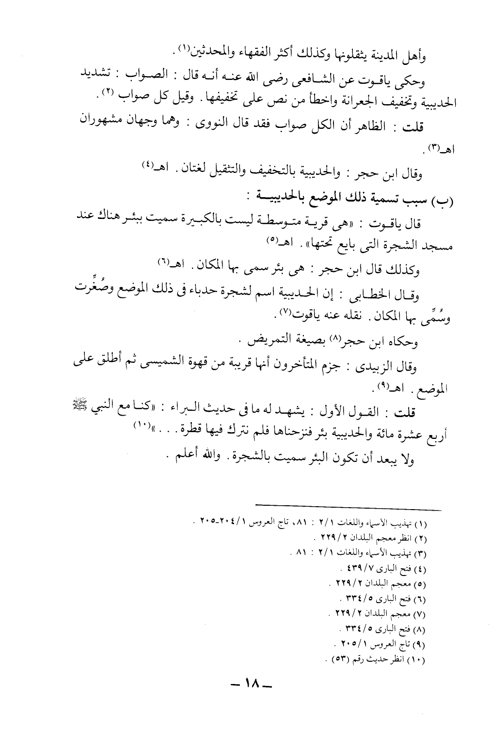 وحكى ياقوت عن الشافعي رضي الله عنه أنه قال: الصواب: "تشديد الحديبية، وتخفيف الجعرانة، وأخطأ من نص على تخفيفها، وقيل كل صواب"2.