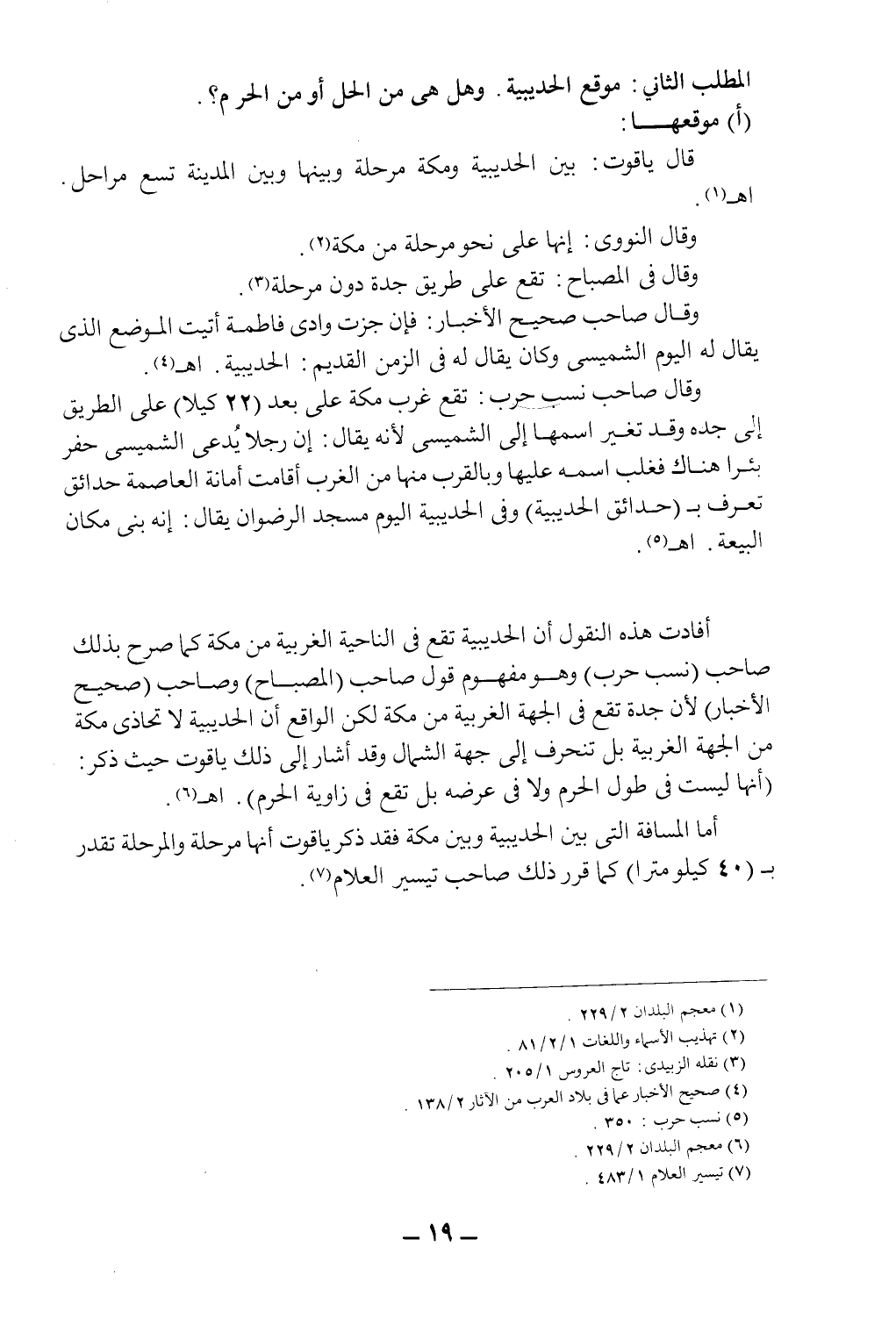 المطلب الثاني: موقع الحديبية، وهل هي من الحل أو من الحرم؟
