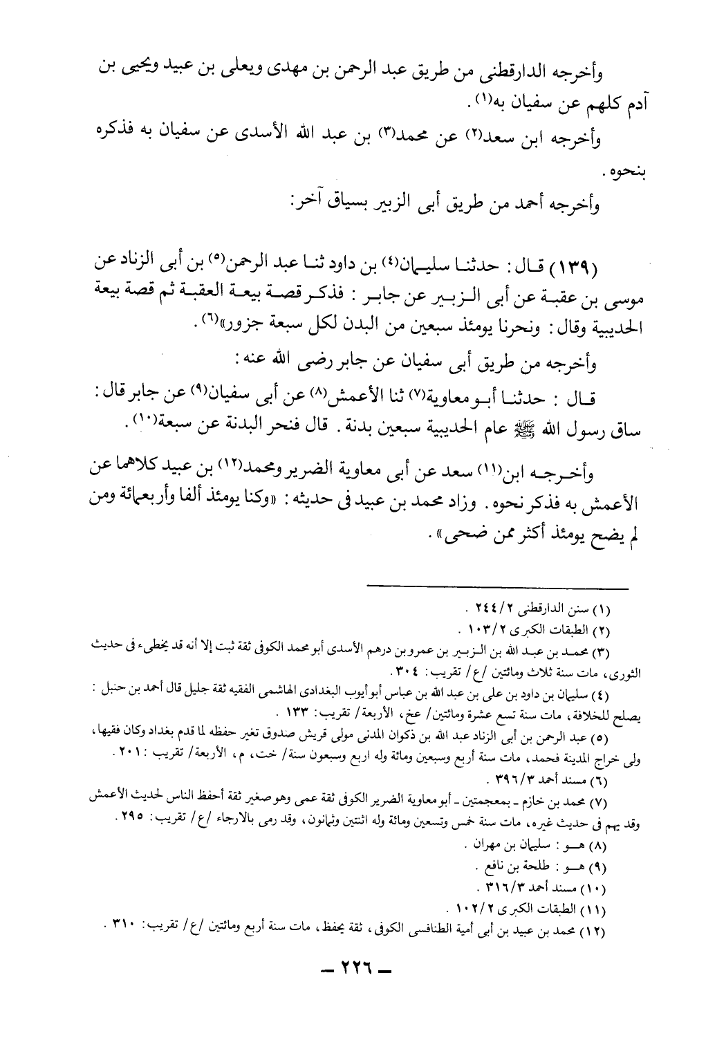 قال: حدثنا أبو معاوية7، ثنا الأعمش8 عن أبي سفيان9 عن جابر قال: ساق رسول الله صلى الله عليه وسلم عام الحديبية سبعين بدنة، قال فنحر البدنة عن سبعة10.