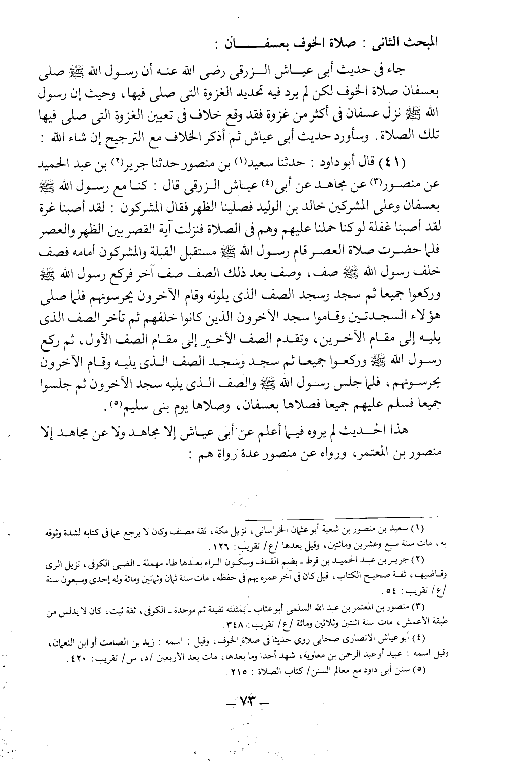 المبحث الثاني: صلاة الخوف بعسفان: