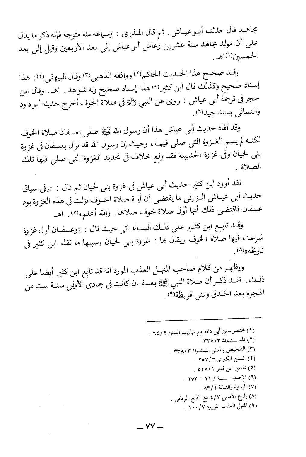 ويظهر من كلام صاحب المنهل العذب المورد، أنه قد تابع ابن كثير أيضاً على ذلك، فقد ذكر أن صلاة النبي صلى الله عليه وسلم بعسفان كانت في جمادى الأولى سنة ست من الهجرة بعد الخندق وبني قريظة9.