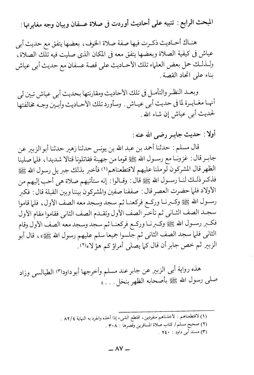 المبحث الرابع: تنبية على أحاديث أوردت في صلاة عسفان وبيان وجه مغايرتها