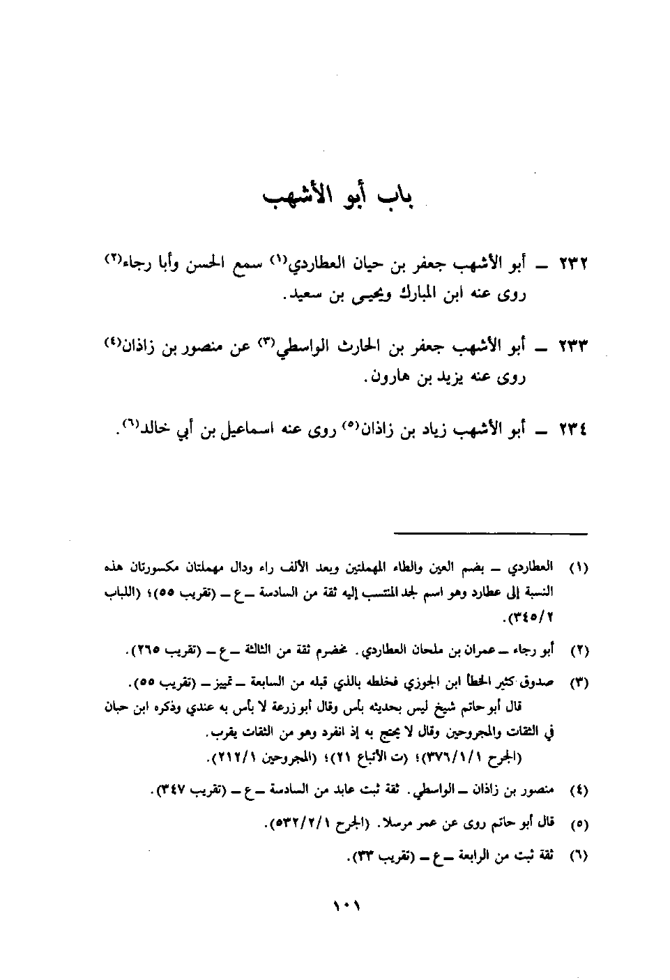 232- أبو الأشهب جعفر بن حيان العطاردي1 سمع الحسن وأبا رجاء2 روى عنه ابن المبارك ويحيى بن سعيد.