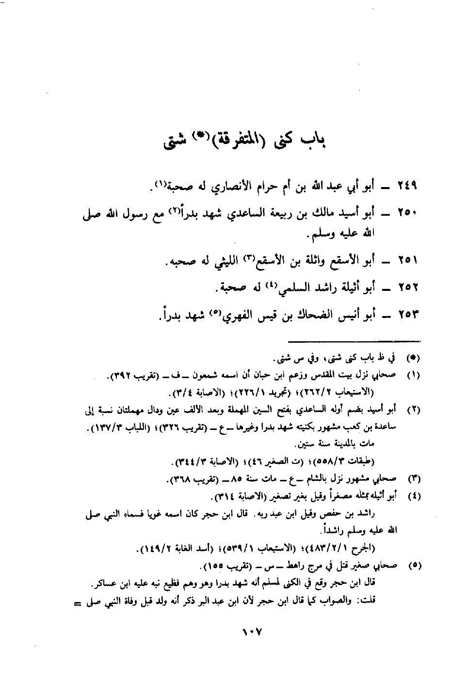 قلت: "والصواب كما قال ابن حجر لأن ابن عبد البر ذكر أنه ولد قبل وفاة النبي صلى الله عليه وسلم بسبع سنين فكيف يمكنه حضور بدر. وهذا من الأوهام التي وقع فيها الإمام مسلم". (ت الكبير 2/2/332) ؛ (الاستيعاب 2/205) ؛ (الاستبصار122) ؛ (الإصابة 2/207) .