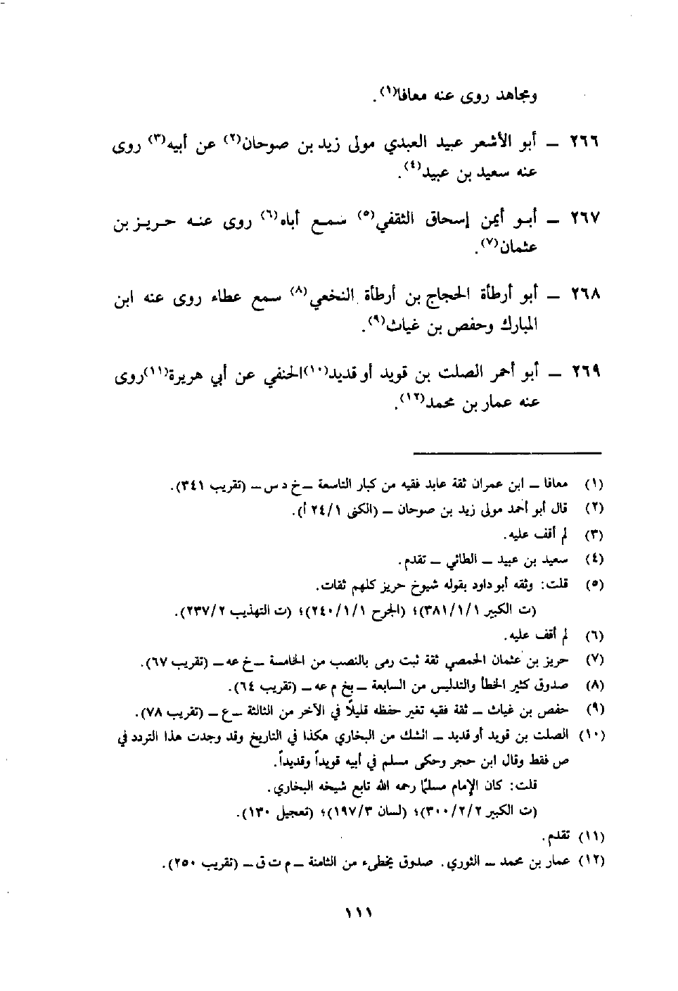 269- أبو أحمر الصلت بن قويد أوقديد10 الحنفي عن أبي هريرة11 روى عنه عمار بن محمد12.