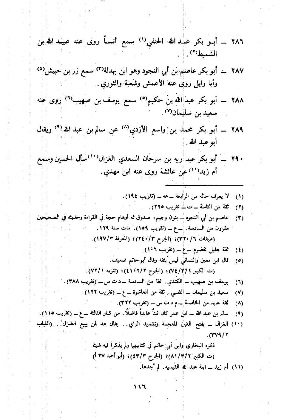 287- أبو بكر عاصم بن أبي النجود وهو ابن بهدلة3 سمع زر بن حبيش4 وأبا وايل روى عنه الأعمش وشعبة والثوري.