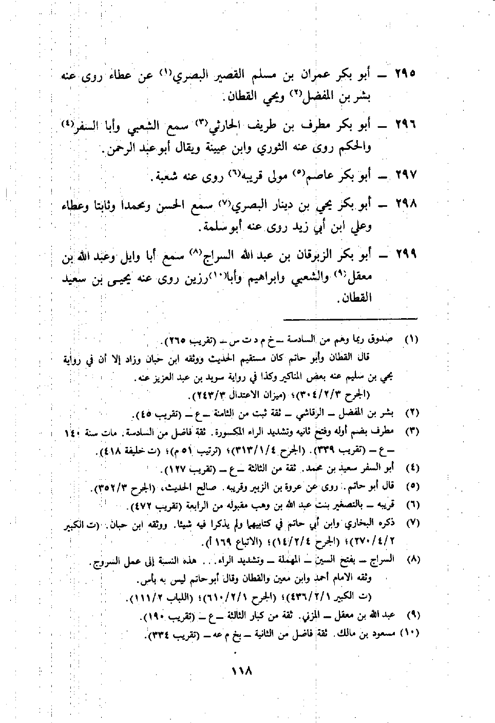 299- أبو بكر الزبرقان بن عبد الله السراج8 سمع أبا وايل وعبد الله بن معقل9 والشعبي وإبراهيم وأبا10 رزين روى عنه يحيى بن سعيد القطان.