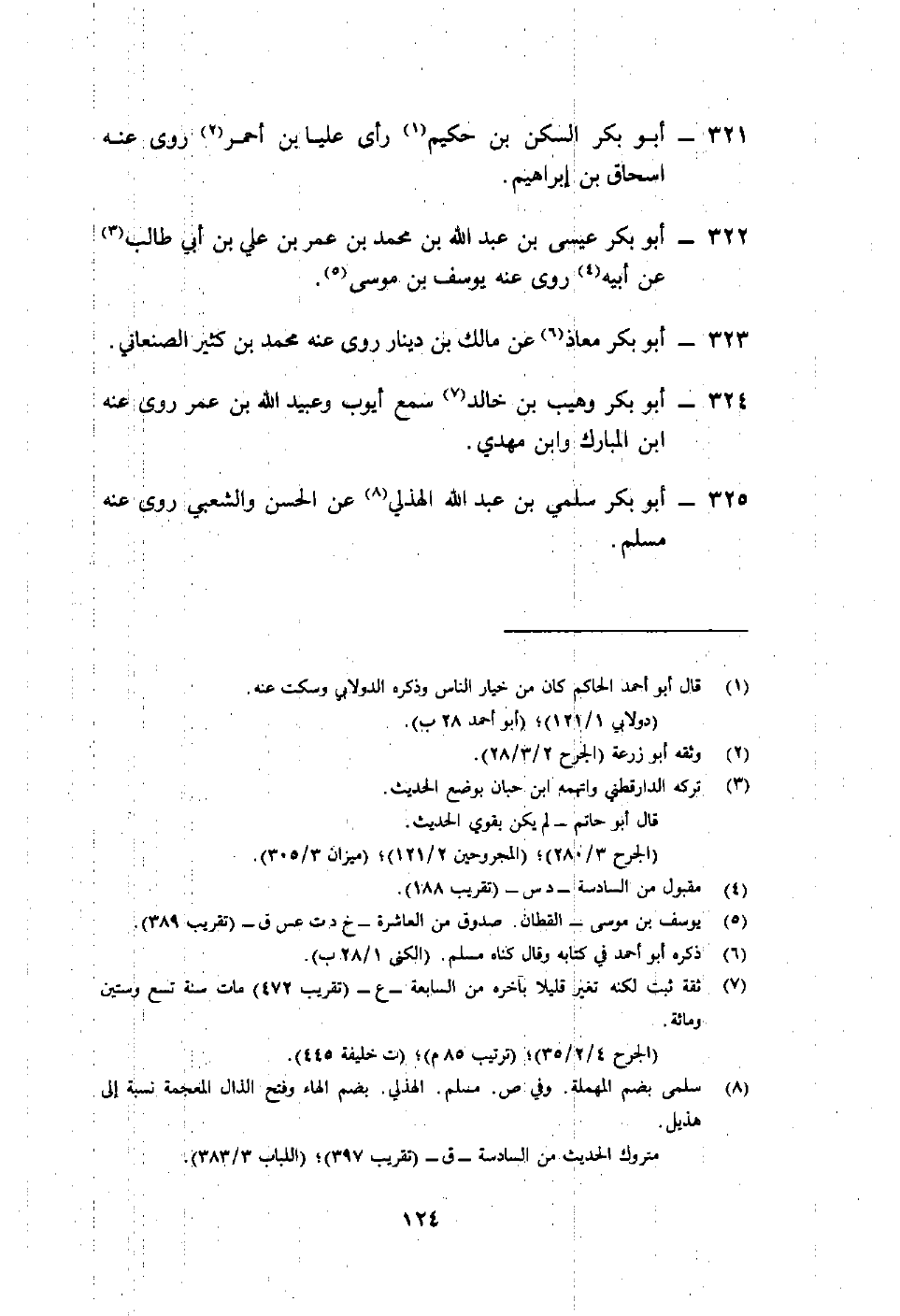 324- أبو بكر وهيب بن خالد7 سمع أيوب وعبيد الله بن عمر روى عنه ابن المبارك وابن مهدي.