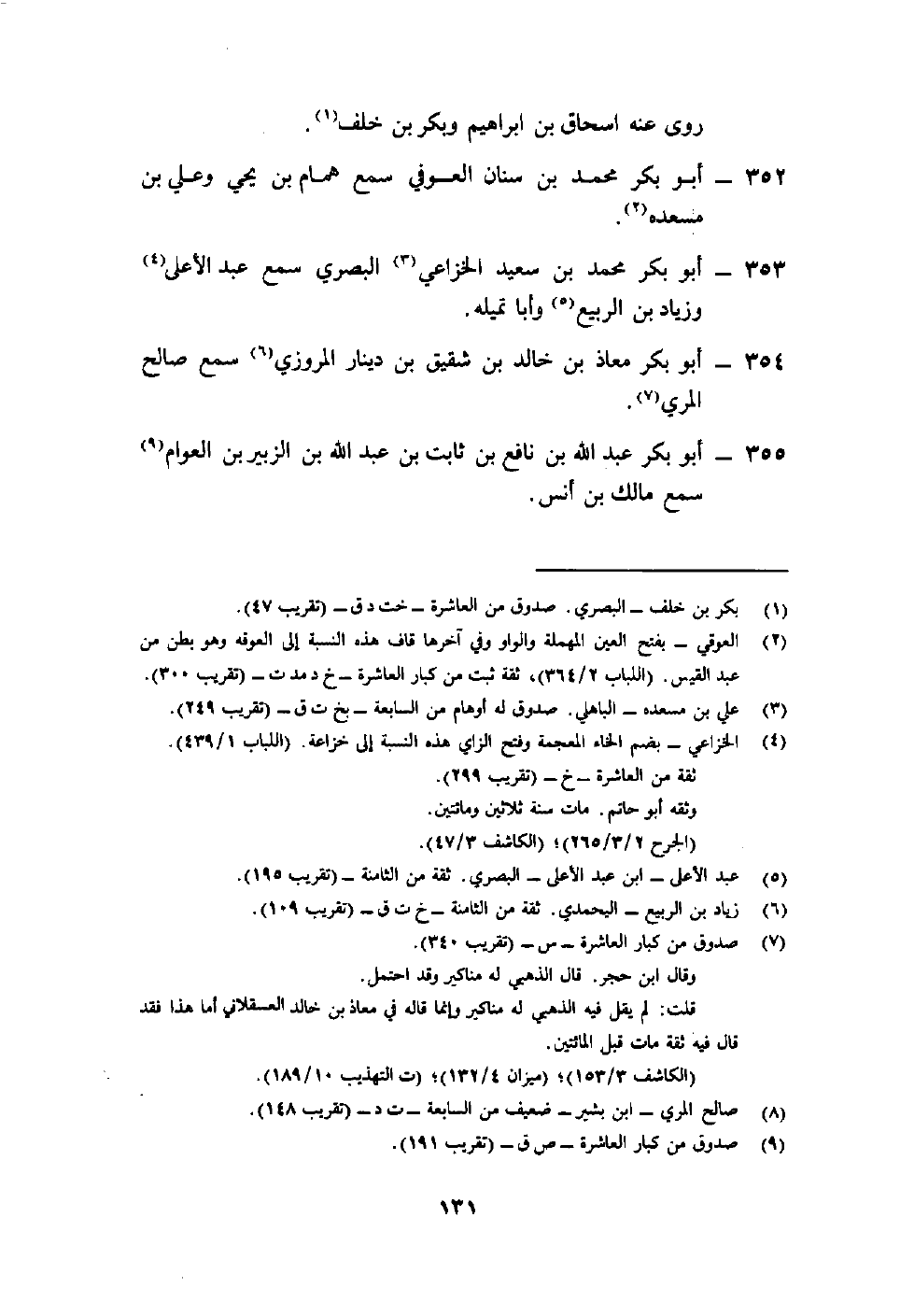 353- أبو بكر محمد بن سعيد الخزاعي4 البصري سمع عبد الأعلى5 وزياد بن الربيع6 وأبا تميله.