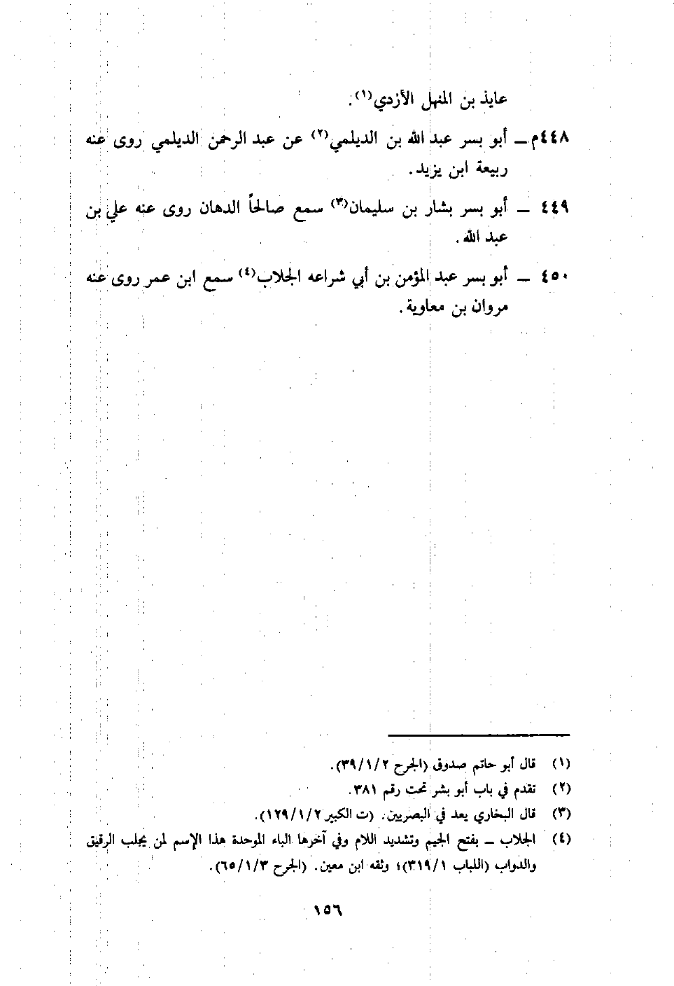 450- أبو بسر عبد المؤمن بن أبي شراعة الجلاب4 سمع ابن عمر روى عنه مروان بن معاوية.