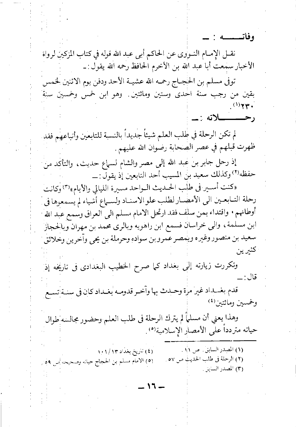 وهذا يعني أن مسلما لم يترك الرحلة في طلب العلم وحضور مجالسه طوال حياته مترددا على الأمصار الإسلامية5.