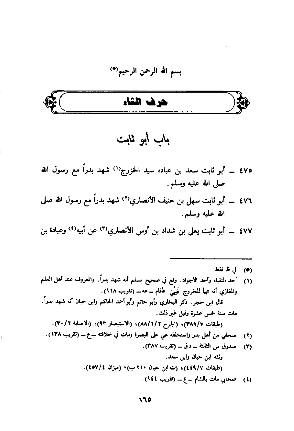 475- أبو ثابت سعد بن عباده سيد الخزرج1 شهد بدرا مع رسول الله صلى الله عليه وسلم.
