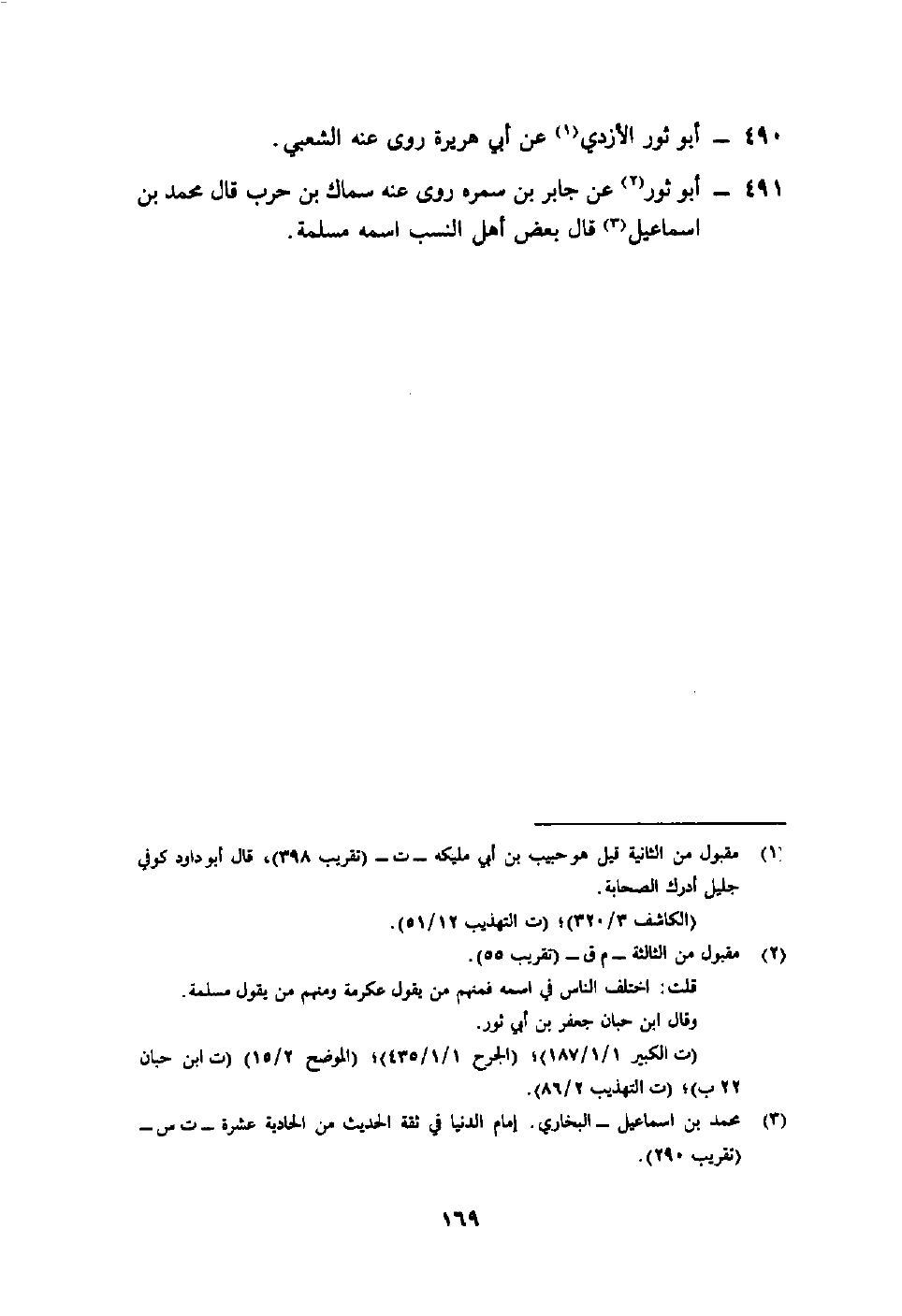 491- أبو ثور2 عن جابر بن سمرة روى عنه سماك بن حرب قال محمد ابن إسماعيل3 قال بعض أهل النسب اسمه مسلمة.