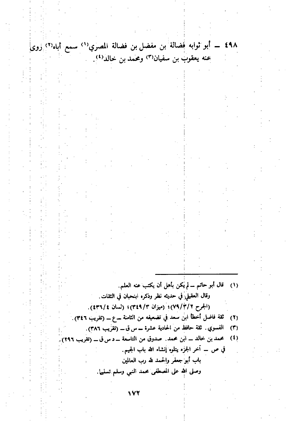 498- أبو ثوابه فضالة بن مفضل بن فضالة المصري1 سمع أباه2 روى عنه يعقوب بن سفيان3 ومحمد بن خالد4.