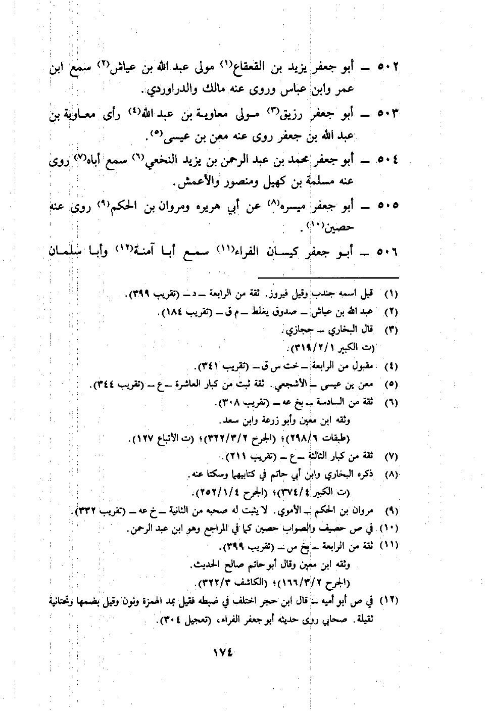505- أبو جعفر ميسرة8 عن أبي هريرة ومروان بن الحكم9 روى عنه حصين10.