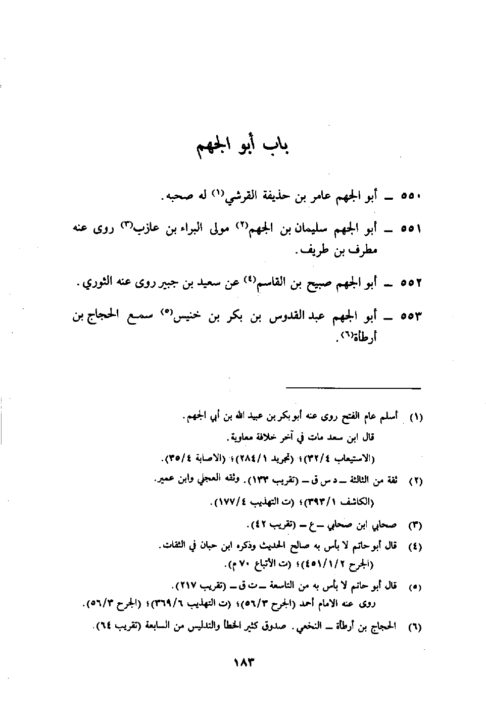 553- أبو الجهم عبد القدوس بن بكر بن خنيس5 سمع الحجاج بن أرطأة6.