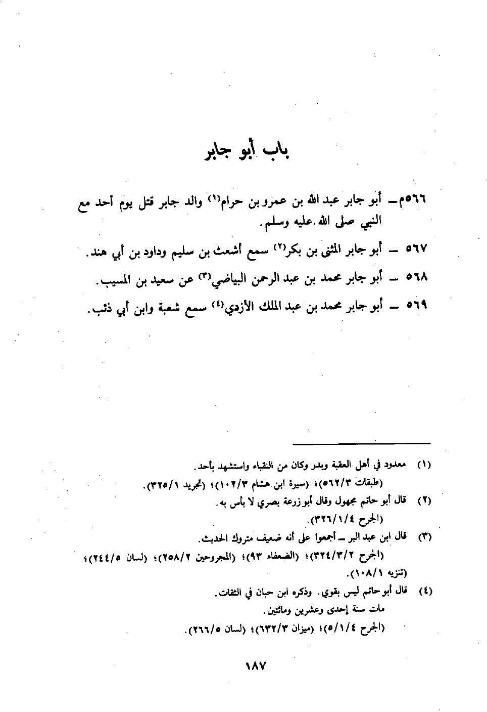 566م- أبو جابر عبد الله بن عمرو بن حرام1 والد جابر قتل يوم أحد مع النبي صلى الله عليه وسلم.