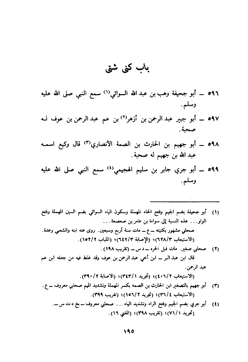596- أبو جحيفة وهب بن عبد الله السوائي1 سمع النبي صلى الله عليه وسلم.