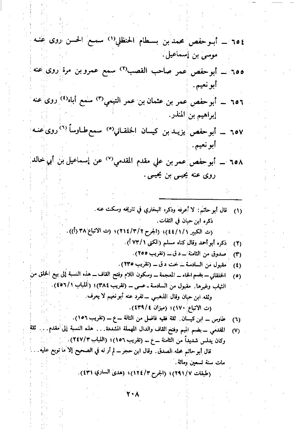 658- أبو حفص عمر بن علي مقدم المقدمي7 عن إسماعيل بن أبي خالد روى عنه يحيى بن يحيى.