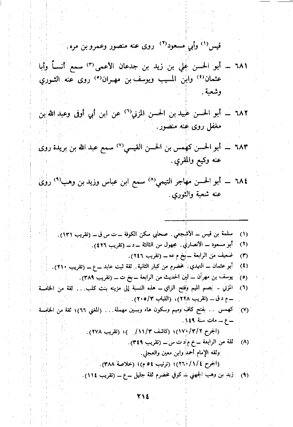 684- أبو الحسن مهاجر التيمي8 سمع ابن عباس وزيد بن وهب9 روى عنه شعبة والثوري.