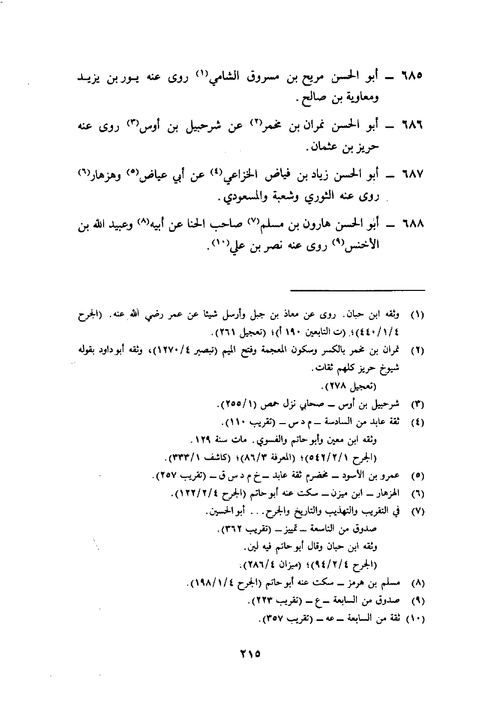 686- أبو الحسن نمران بن مخمر2 عن شرحبيل بن أوس3 روى عنه حريز بن عثمان.