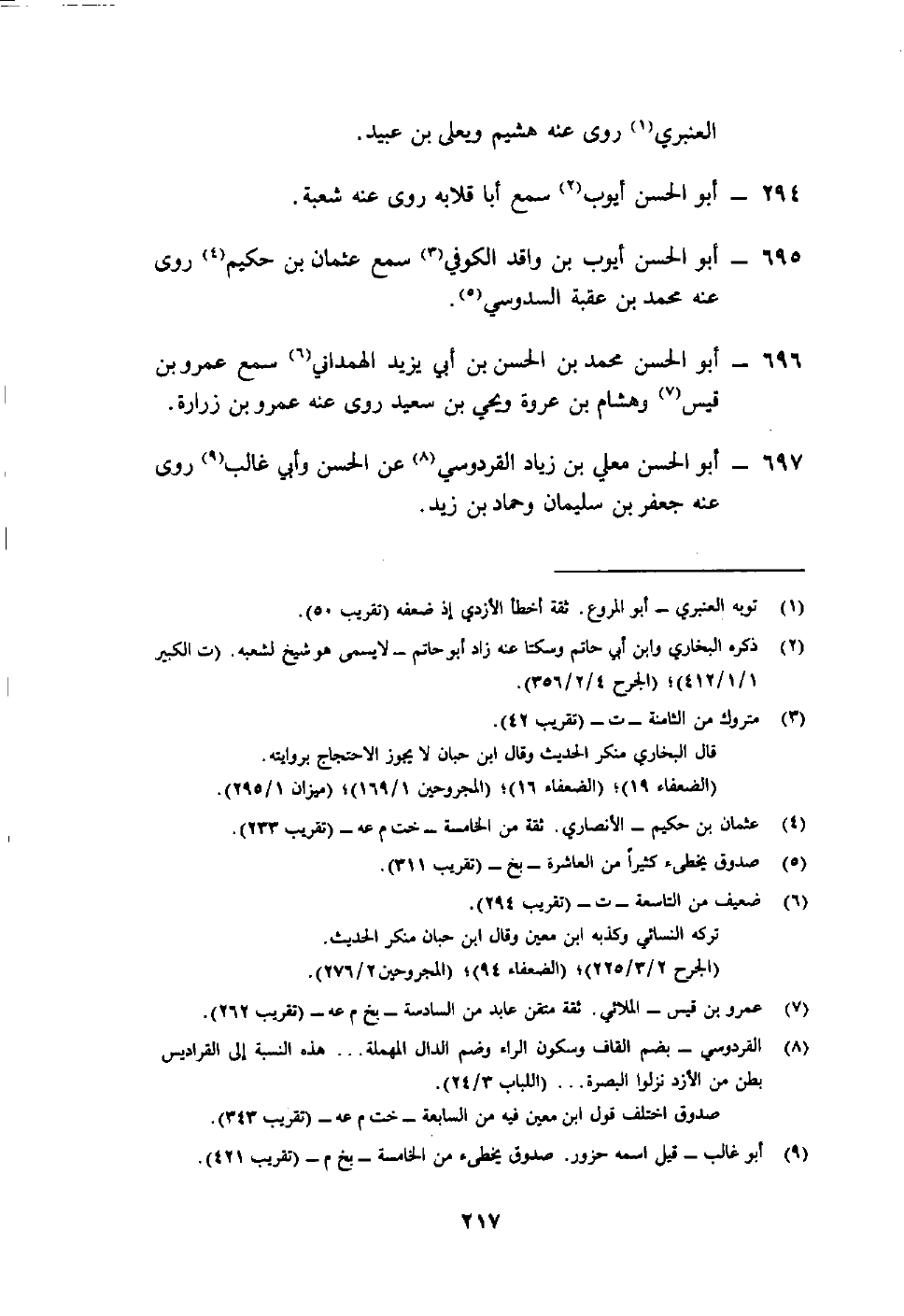 697- أبو الحسن معلي بن زياد القردوسي8 عن الحسن وأبي غالب9 روى عنه جعفر بن سليمان وحماد بن زيد.
