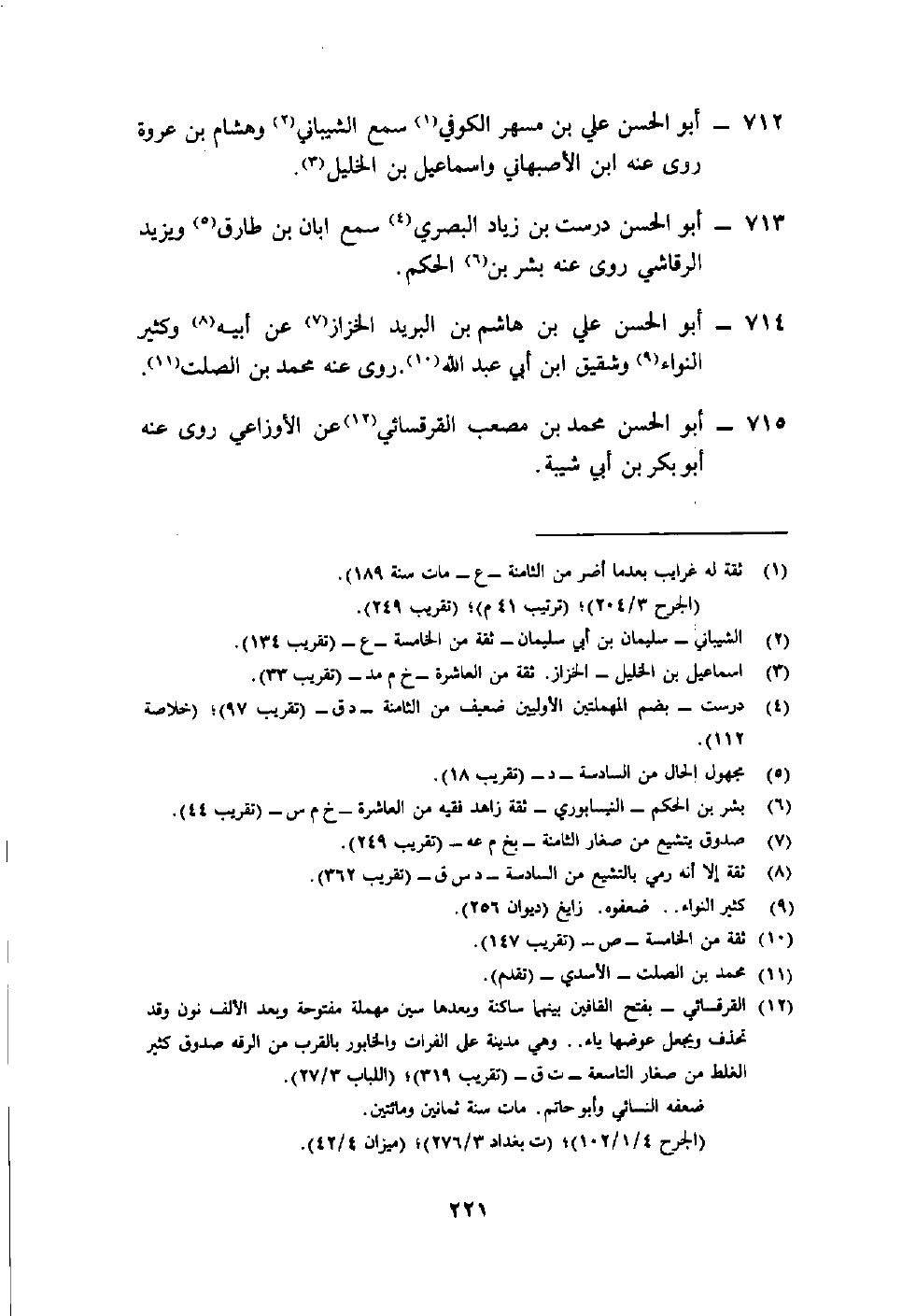 714- أبو الحسن علي بن هاشم بن البريد الخزاز7 عن أبيه8 وكثير النواء9 وشقيق بن أبي عبد الله10 روى عنه محمد بن الصلت11.