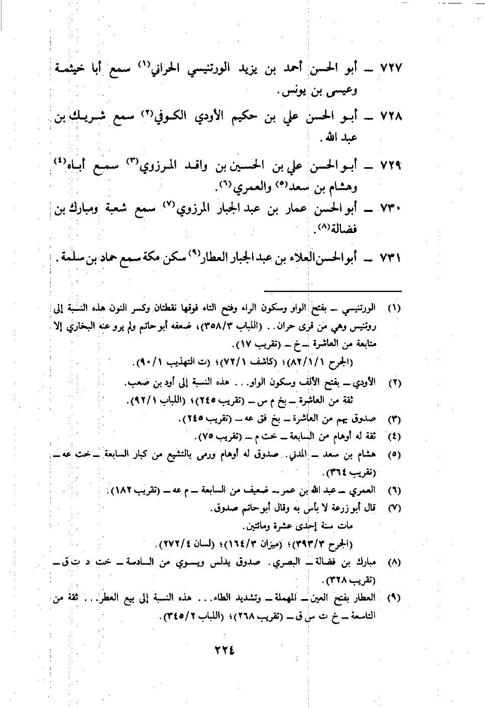 731- أبو الحسن العلاء بن عبد الجبار العطار9 سكن مكة سمع حماد ابن سلمة.