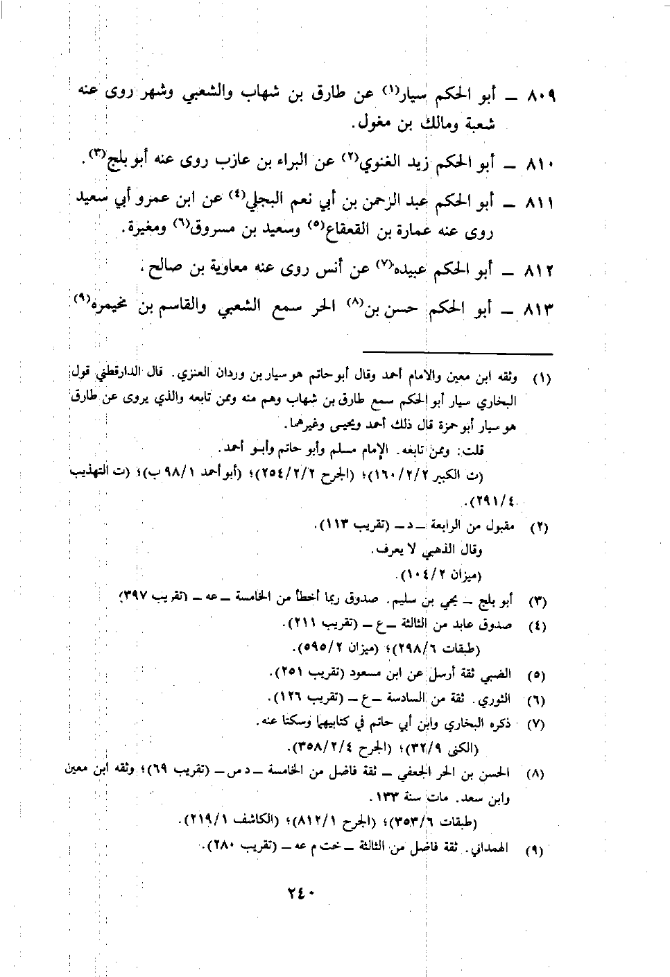 809- أبو الحكم سيار1 عن طارق بن شهاب والشعبي وشهر روى عنه شعبة ومالك بن مغول.