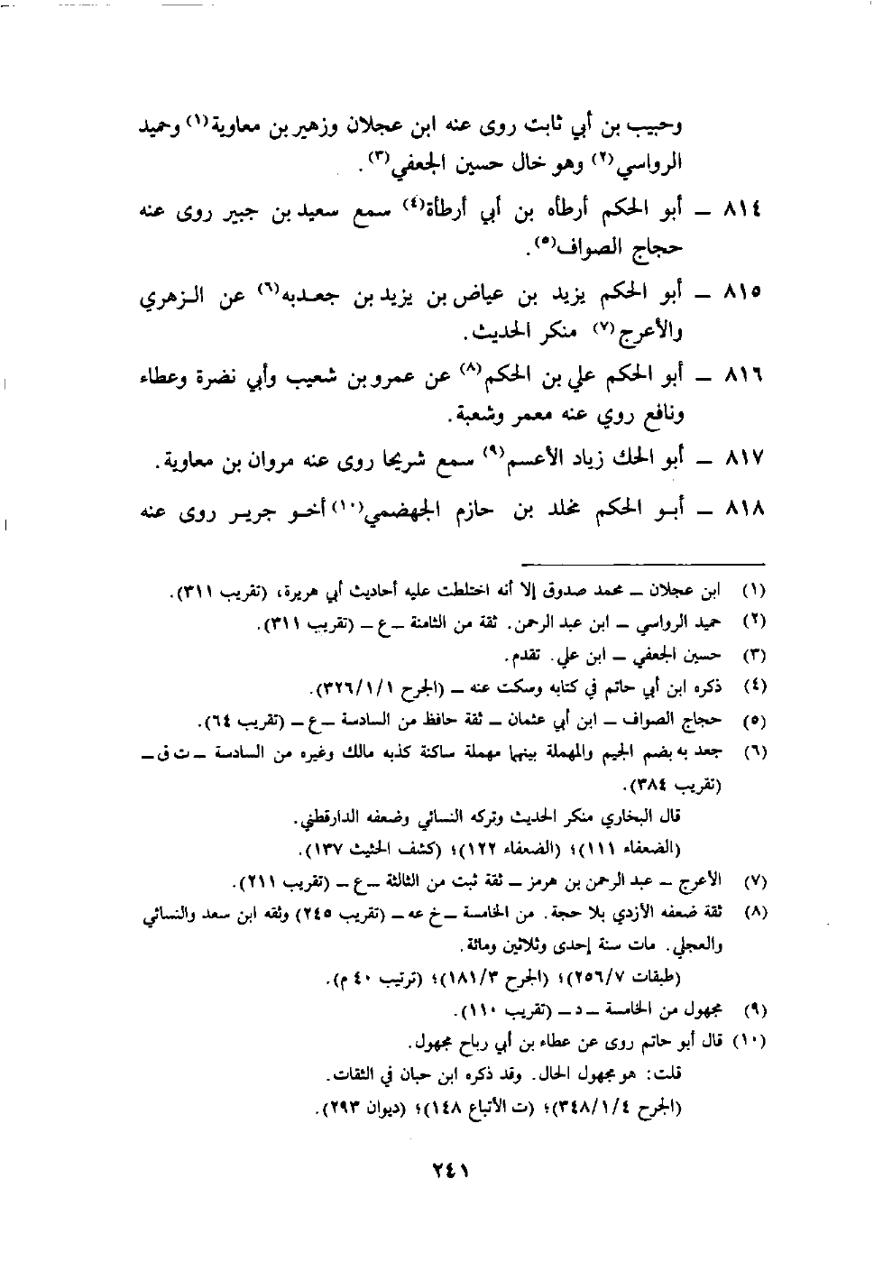 816- أبو الحكم علي بن الحكم8 عن عمرو بن شعيب وأبي نضرة وعطاء ونافع روى عنه معمر وشعبة.