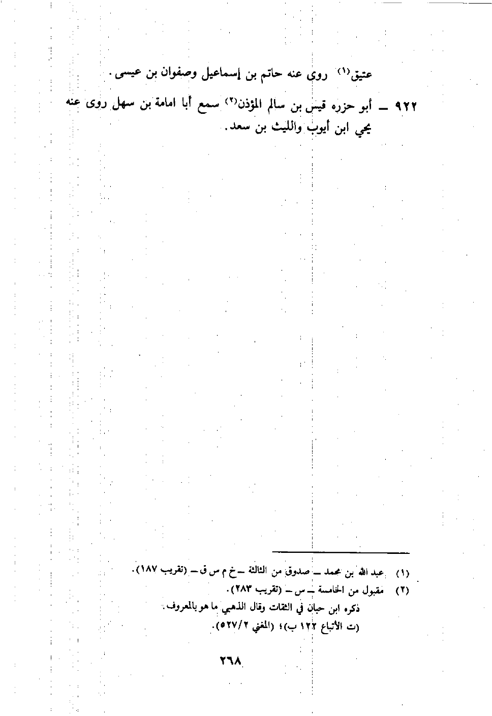 922- أبو حزرة قيس بن سالم المؤذن2 سمع أبا امامة بن سهل روى عنه يحيى ابن أيوب والليث بن سعد.