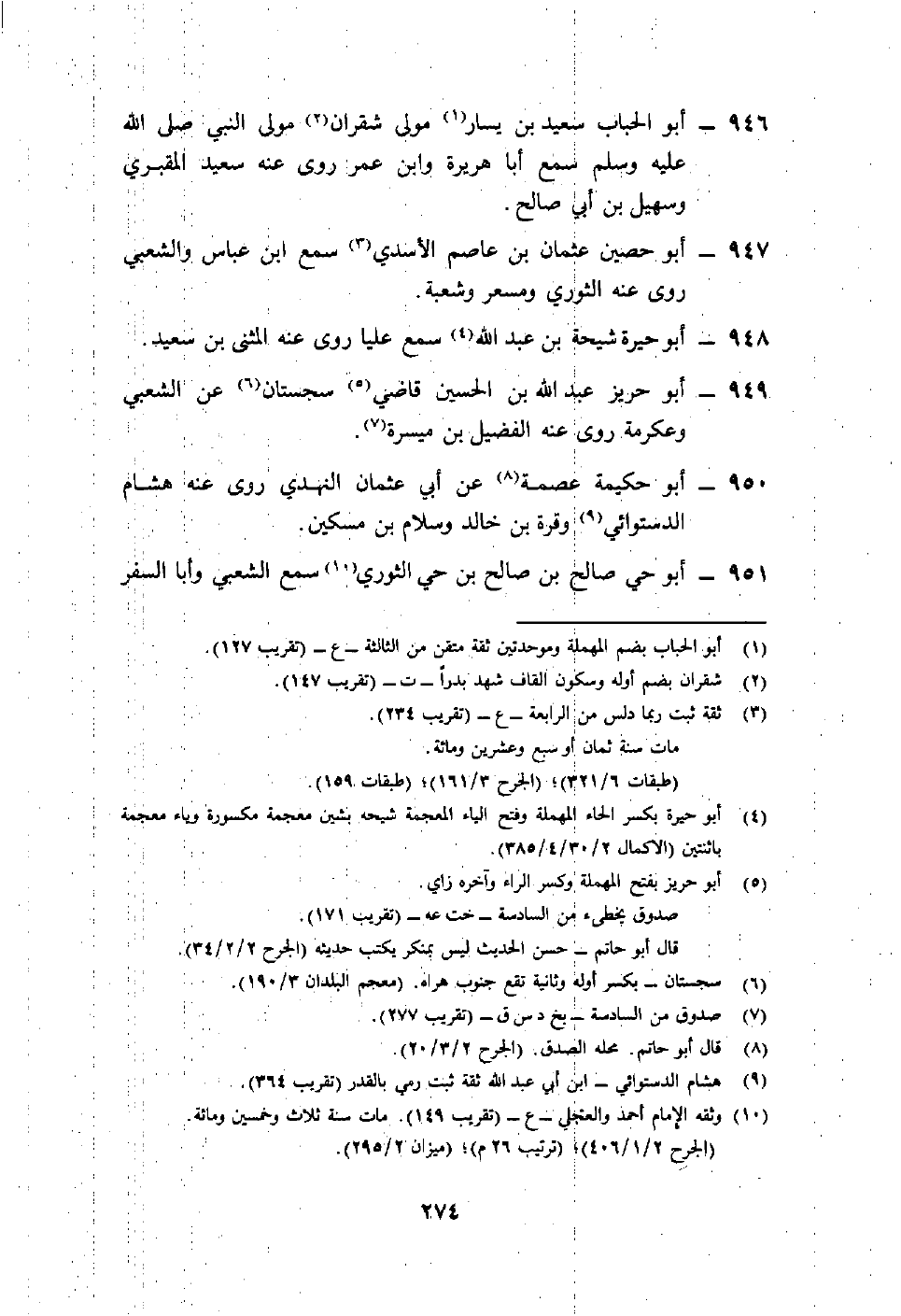 946- أبو الحباب سعيد بن يسار1 مولى شقران2 مولى النبي صلى الله عليه وسلم سمع أبا هريرة وابن عمر روى عنه سعيد المقبري وسهيل بن أبي صالح.