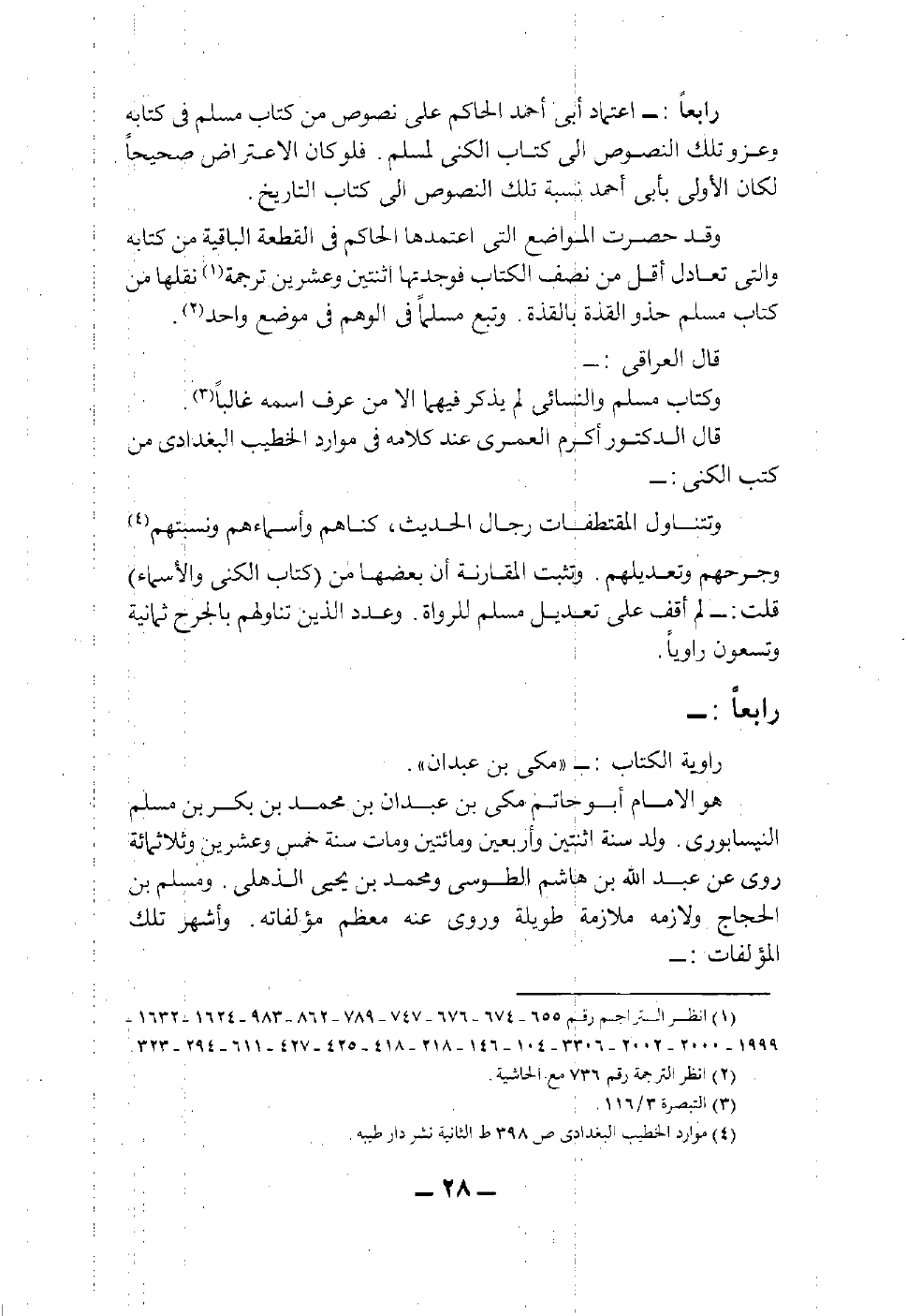 رابعا: اعتماد أبي أحمد الحاكم على نصوص من كتاب مسلم في كتابه وعزو تلك النصوص إلى كتاب الكنى لمسلم. فلو كان الاعتراض صحيحا لكان الأولى بأبي أحمد نسبة تلك النصوص إلى كتاب التاريخ.