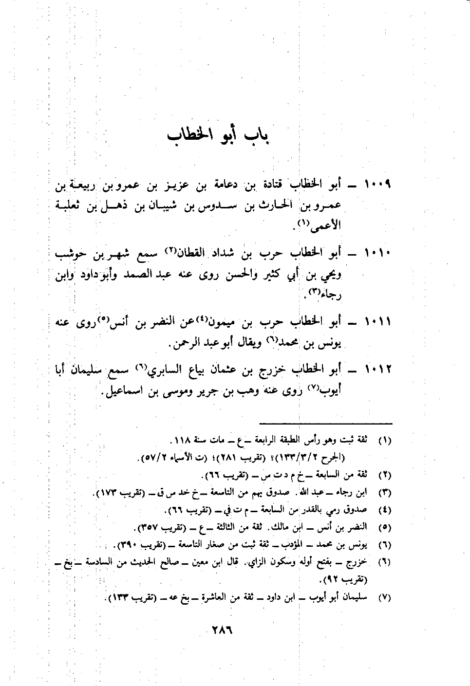 1011- أبو الخطاب حرب بن ميمون4 عن النضر بن أنس5 روى عنه يونس بن محمد6 ويقال أبو عبد الرحمن.