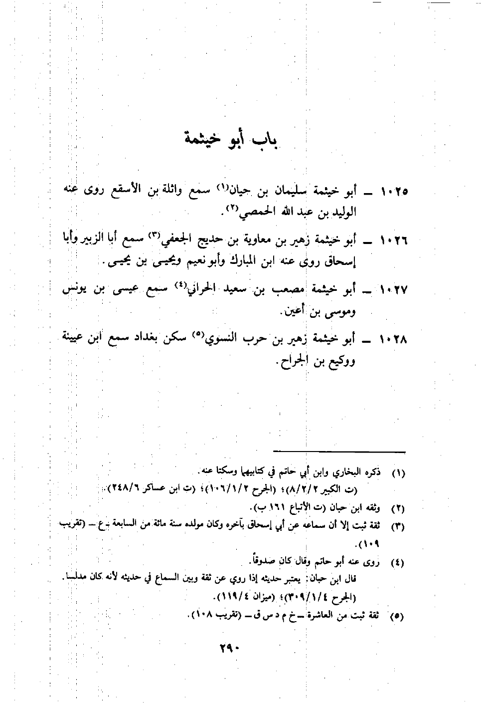 1026- أبو خيثمة زهير بن معاوية بن حديج الجعفي3 سمع أبا الزبير وأبا إسحاق روى عنه ابن المبارك وأبو نعيم ويحيى بن يحيى.