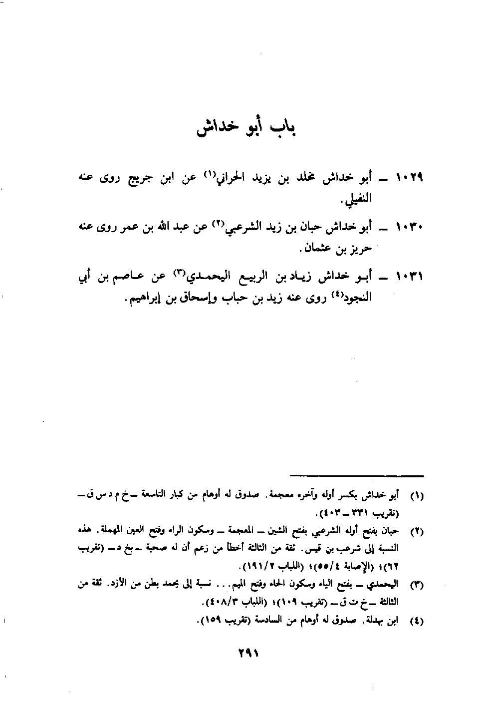 1030- أبو خداش حبان بن زيد الشرعبي2 عن عبد الله بن عمر روى عنه حريز بن عثمان.