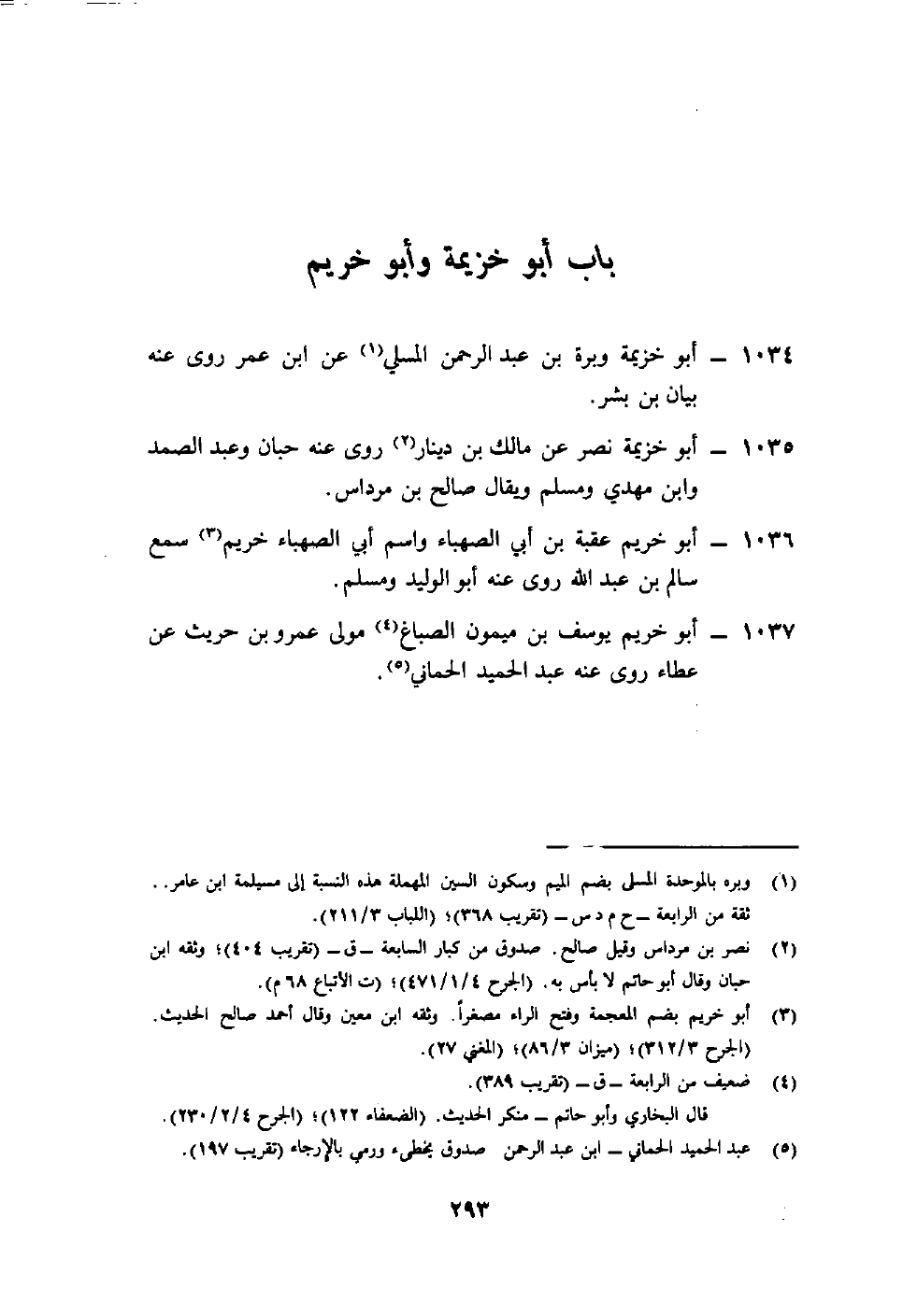 1035- أبو خزيمة نصر عن مالك بن دينار2 روى عنه حبان وعبد الصمد وابن مهدي ومسلم ويقال صالح بن مرداس.