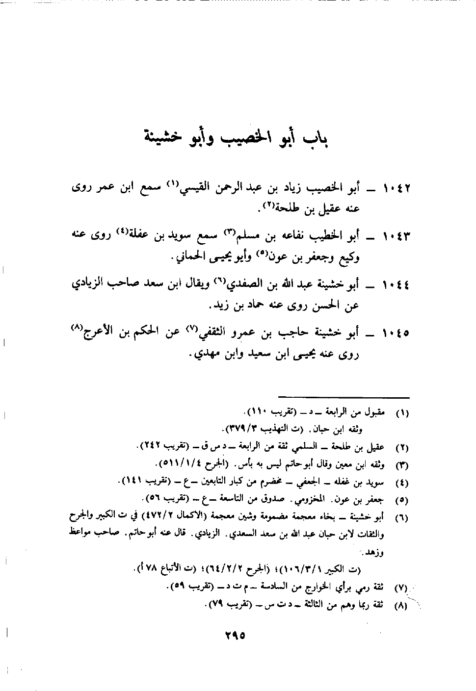 1045- أبو خشينة حاجب بن عمرو الثقفي7 عن الحكم بن الأعرج8 روى عنه يحيى بن سعيد وابن مهدي.