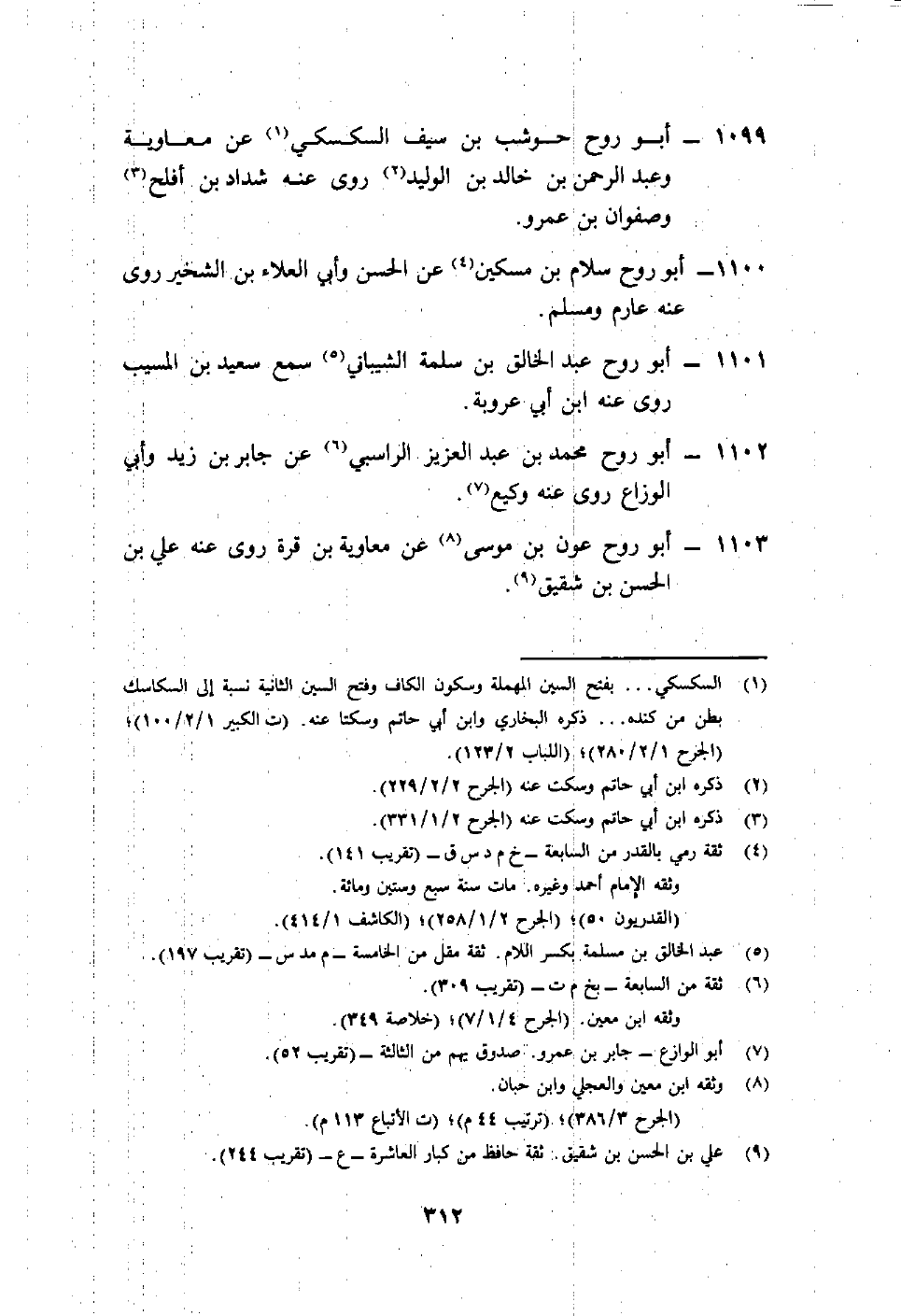 1102- أبو روح محمد بن عبد العزيز الراسبي6 عن جابر بن زيد وأبي الوازع روى عنه وكيع7.