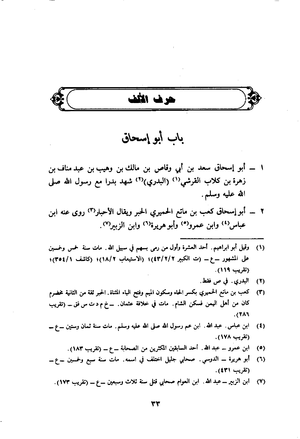 1- أبو إسحاق سعد بن أبي وقاص بن مالك بن وهيب بن عبد مناف بن زهرة بن كلاب القرشي1 (البدري) 2 شهد بدرا مع رسول الله صلى الله عليه وسلم.