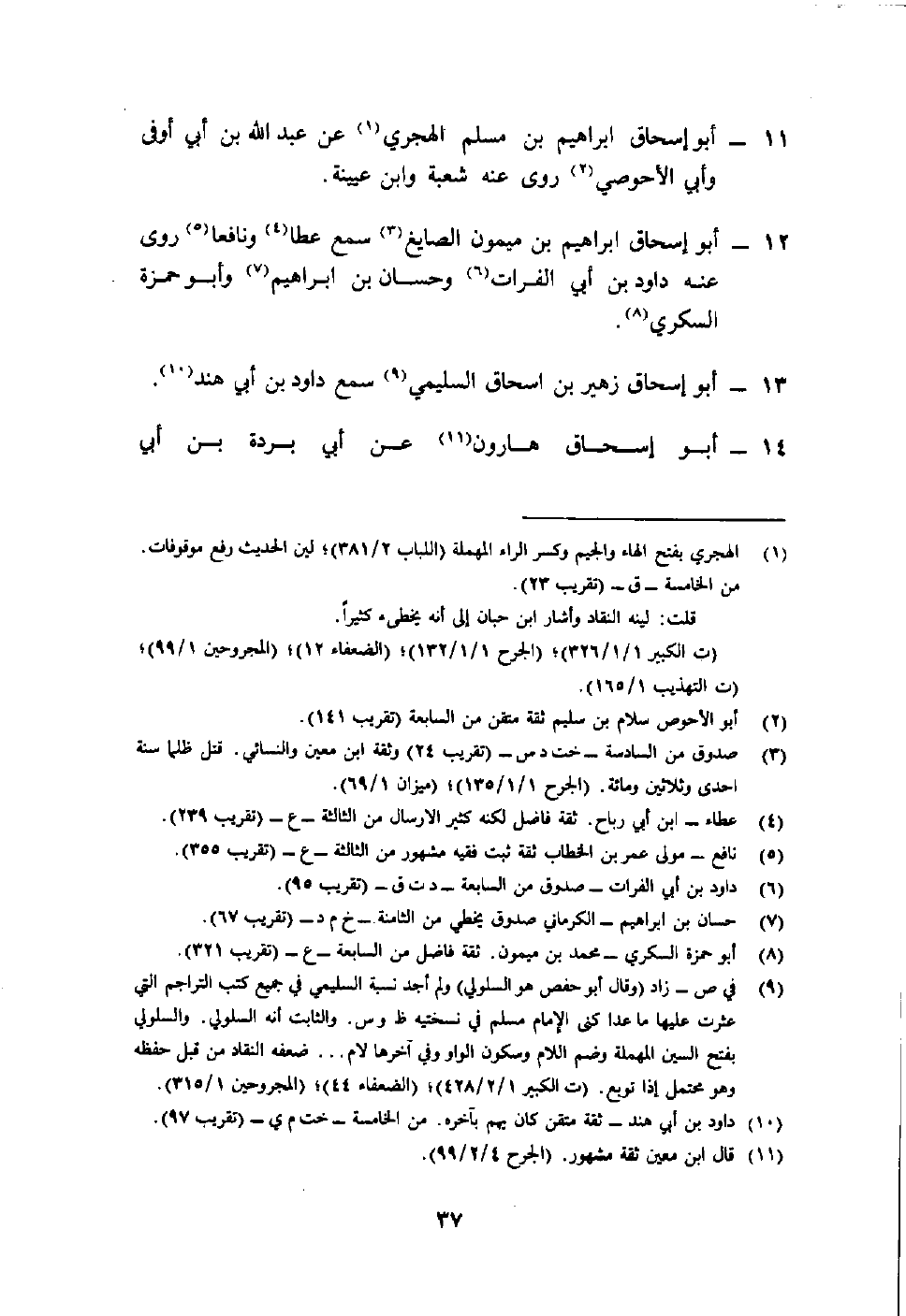 12- أبو إسحاق إبراهيم بن ميمون الصايغ3 سمع عطاء4 ونافعا5 روى عنه داود بن أبي الفرات6 وحسان بن إبراهيم7 وأبو حمزة السكري8.