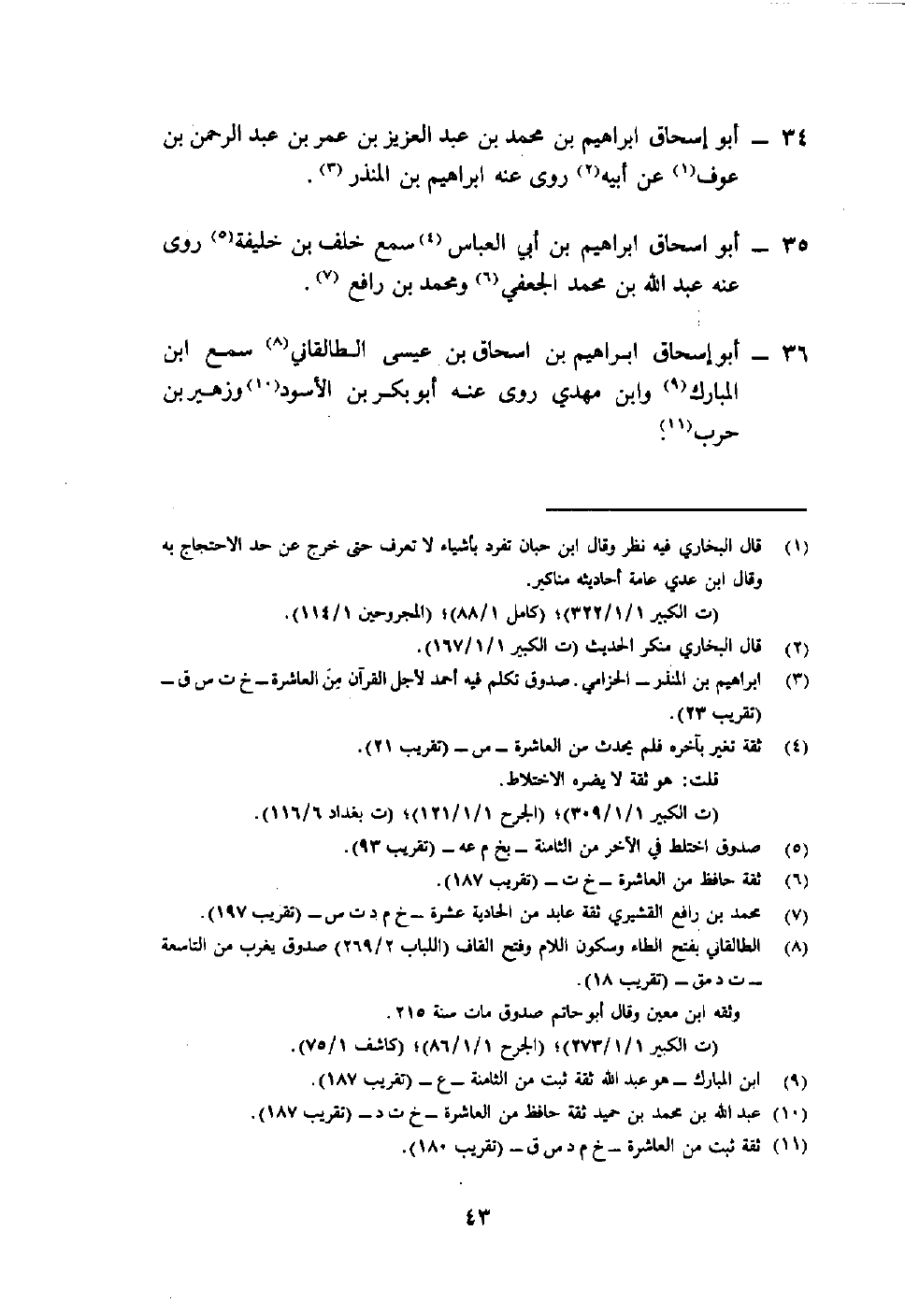 36- أبو إسحاق إبراهيم بن إسحاق بن عيسى الطالقاني8 سمع ابن المبارك9 وابن المهدي روى عنه أبو بكر بن الأسود10 وزهير بن حرب11.