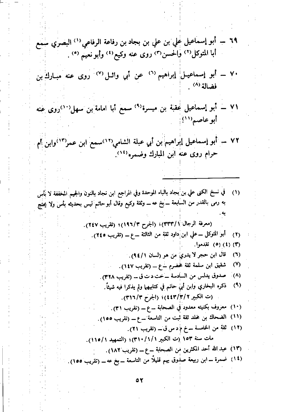 69- أبو إسماعيل علي بن علي بن بجاد بن رفاعة الرفاعي1 البصري سمع أبا المتوكل2 والحسن روى عنه وكيع وأبو نعيم3.